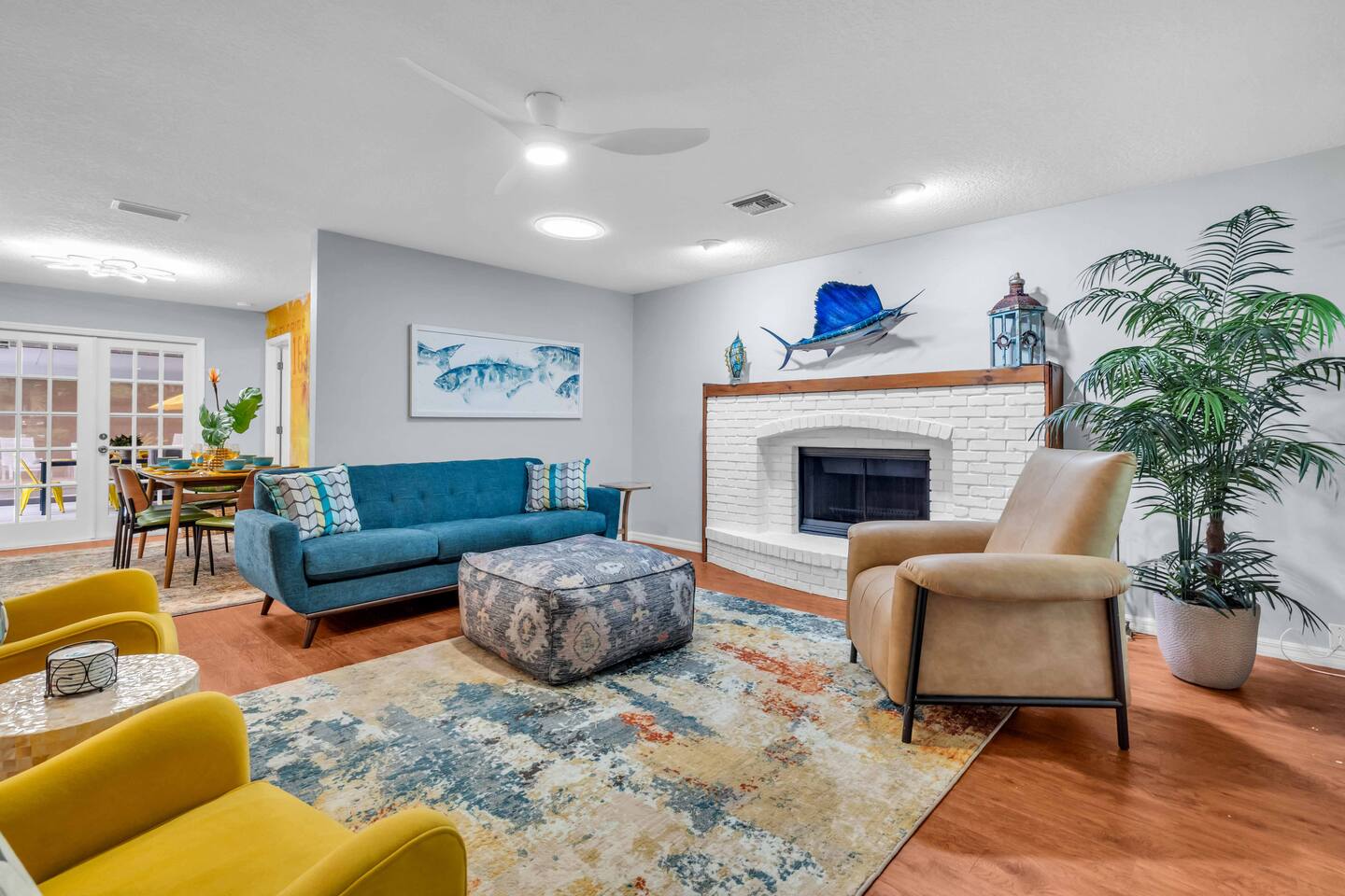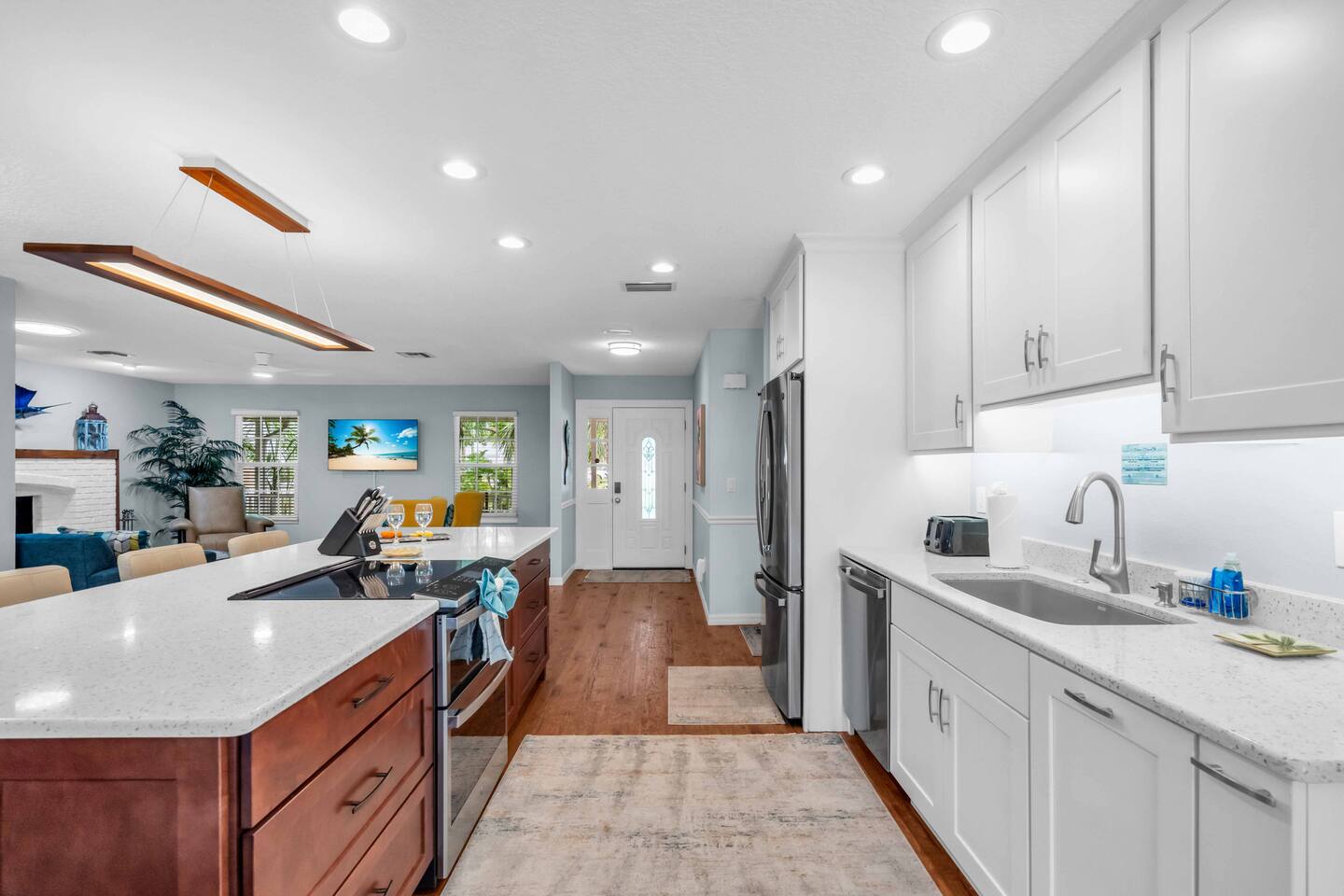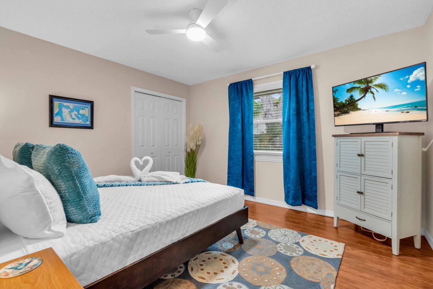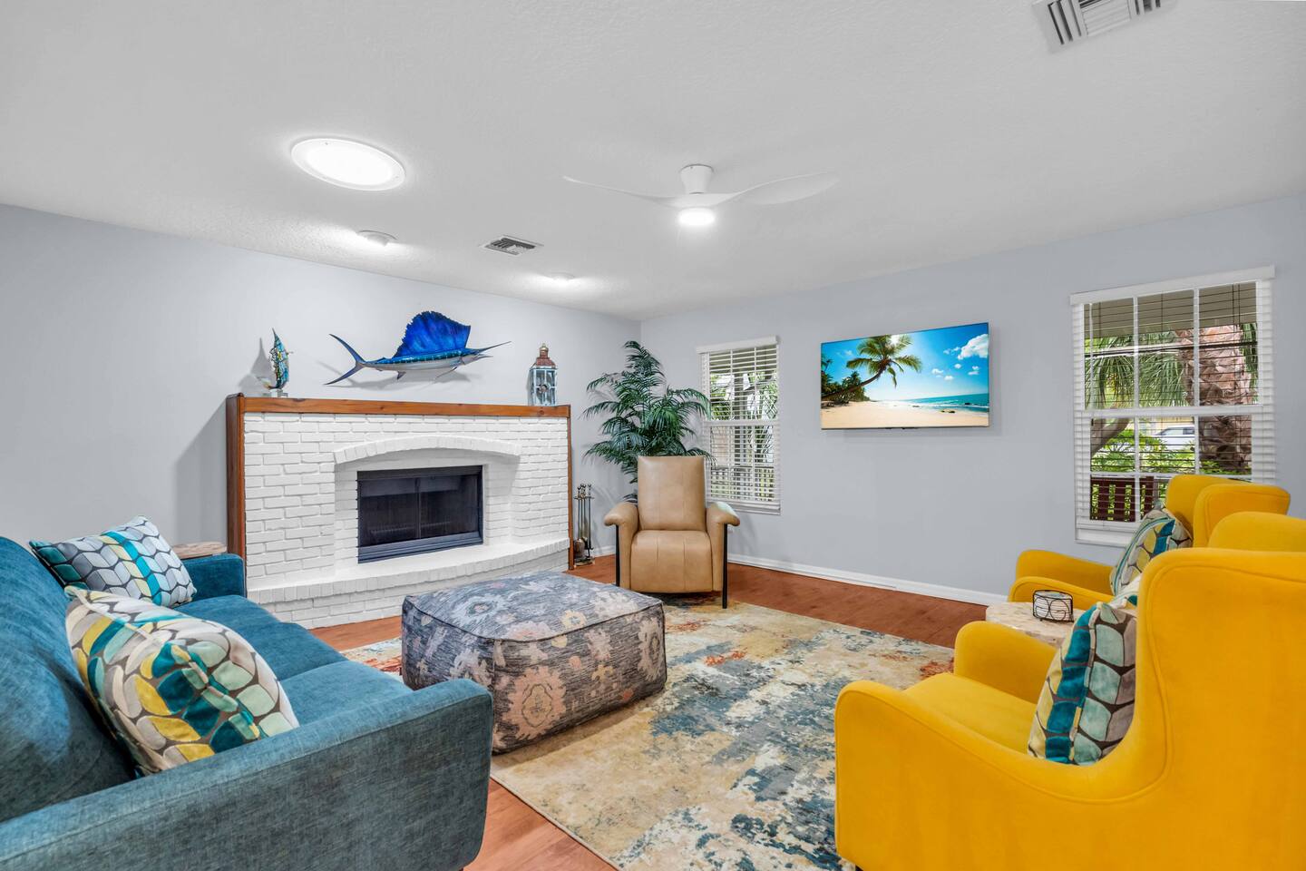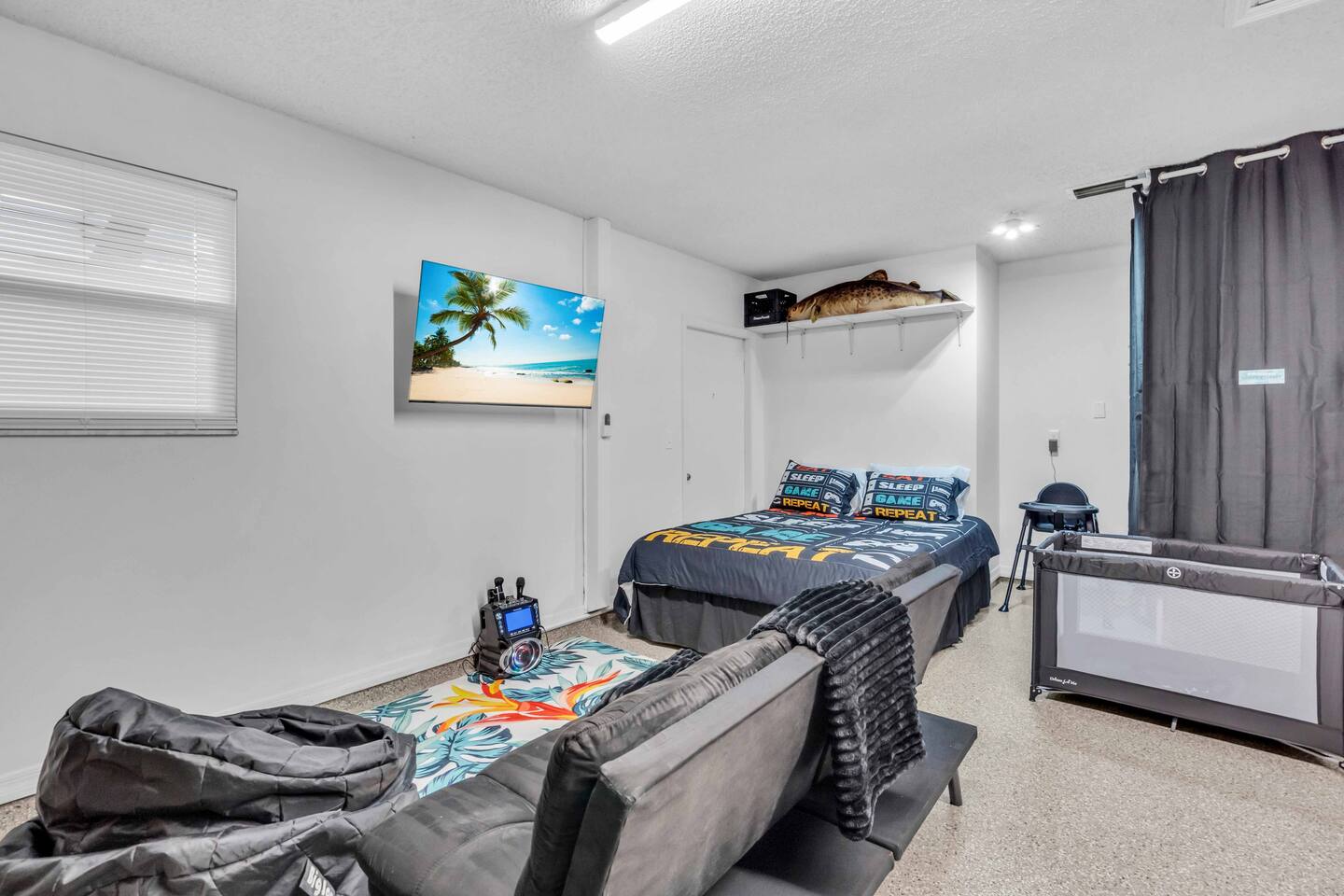 Check-in: 4:00 PM | Check-out: 10:00 AM House Rules: No smoking, and please respect quiet hours from 10 PM – 7 AM. Trash & Recycling: Trash is collected Monday & Thursday mornings. Recycling is picked up Thursday, and yard waste on Wednesday. Please place bins curbside by 6 AM on collection days. Pool & Hot Tub: Professionally maintained twice weekly Tuesday and Friday. Please shower before use and never leave children unattended. Do note these days as the pool cleaner will enter the backyard on these days. Yard maintenance is a must in this beautiful tropical climate year-round. Our landscaper will enter the backyard on Saturdays to tidy the area during your stay and make it wonderful for you. Smart TV Use: All 7 Roku TVs are set up for Guest Mode so you can log in with your own streaming accounts and automatically sign out at checkout. Outdoor Shower: A private shower with hot and cold water is available near the pool area. Family-Friendly: Highchair and Pack ’n Play provided. Games & Entertainment: Please enjoy arcade games, foosball, ping pong, mini golf, and yard games responsibly. Return items to their place after use. Our home is treated quarterly by a professional pest company. You may spot harmless lizards or other Florida critters—just let us know if anything needs attention, and we’ll have our pest team take care of it. The washer and dryer room is interior way down the hall with no door, so you might hear a little noise when in use, but the units are high-end and quiet. We do our best to keep everything in perfect condition for you. Please treat the home with care so future guests can enjoy the same wonderful experience.
