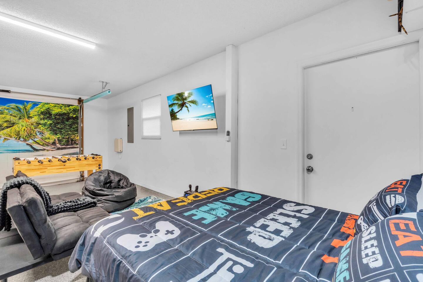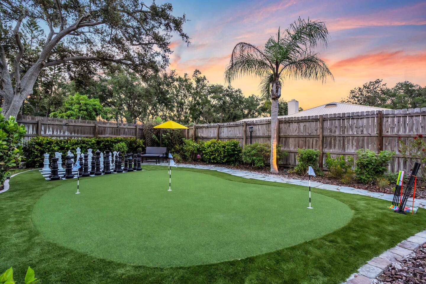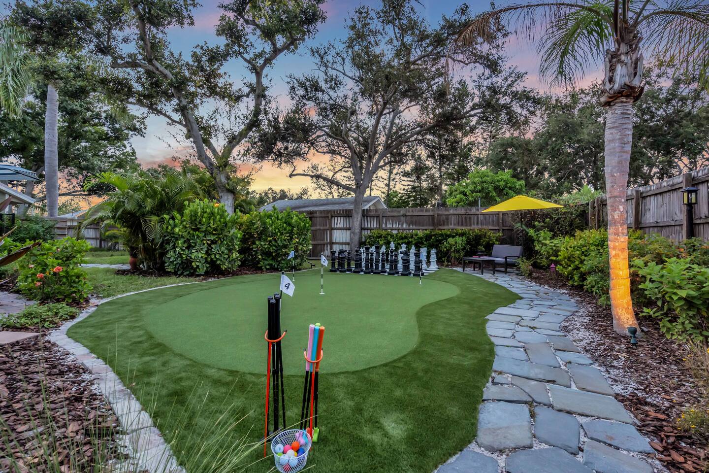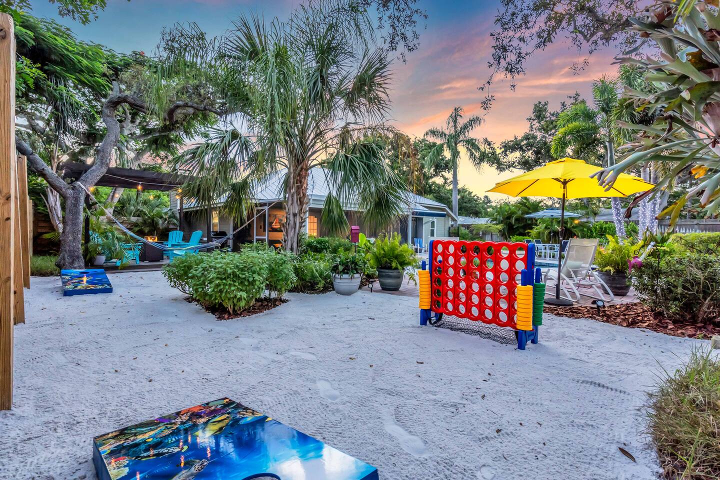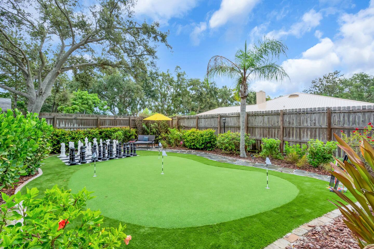 Guests will have full private access to the entire home and outdoor spaces during their stay, including: The whole house – 4 bedrooms, 2 bathrooms, living areas, fully equipped kitchen, and laundry room. Private pool & attached spa – fully screened lanai with outdoor dining and lounge seating. Tropical backyard oasis – mini golf, giant chess, cornhole, giant Connect Four, pergola with fire pit, grill, and garden walkways. Game zones – arcade machines, foosball, ping pong, and lounge game area. Outdoor shower with hot & cold water. Driveway parking for multiple vehicles 6+. Entry is simple with a smart lock and personalized code provided before arrival. No shared spaces — the home and property are exclusively yours to enjoy.