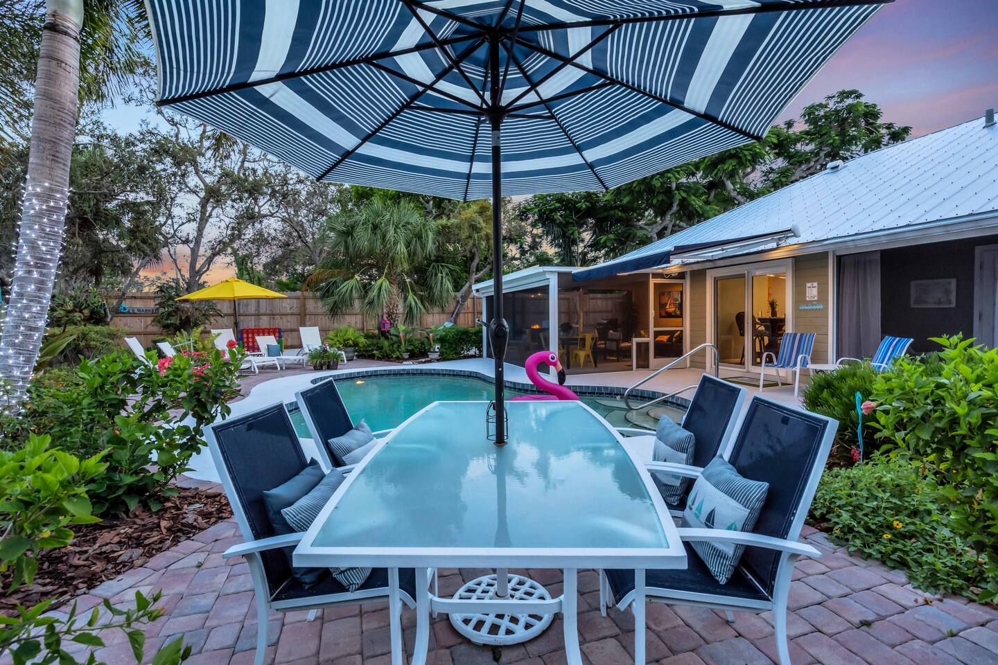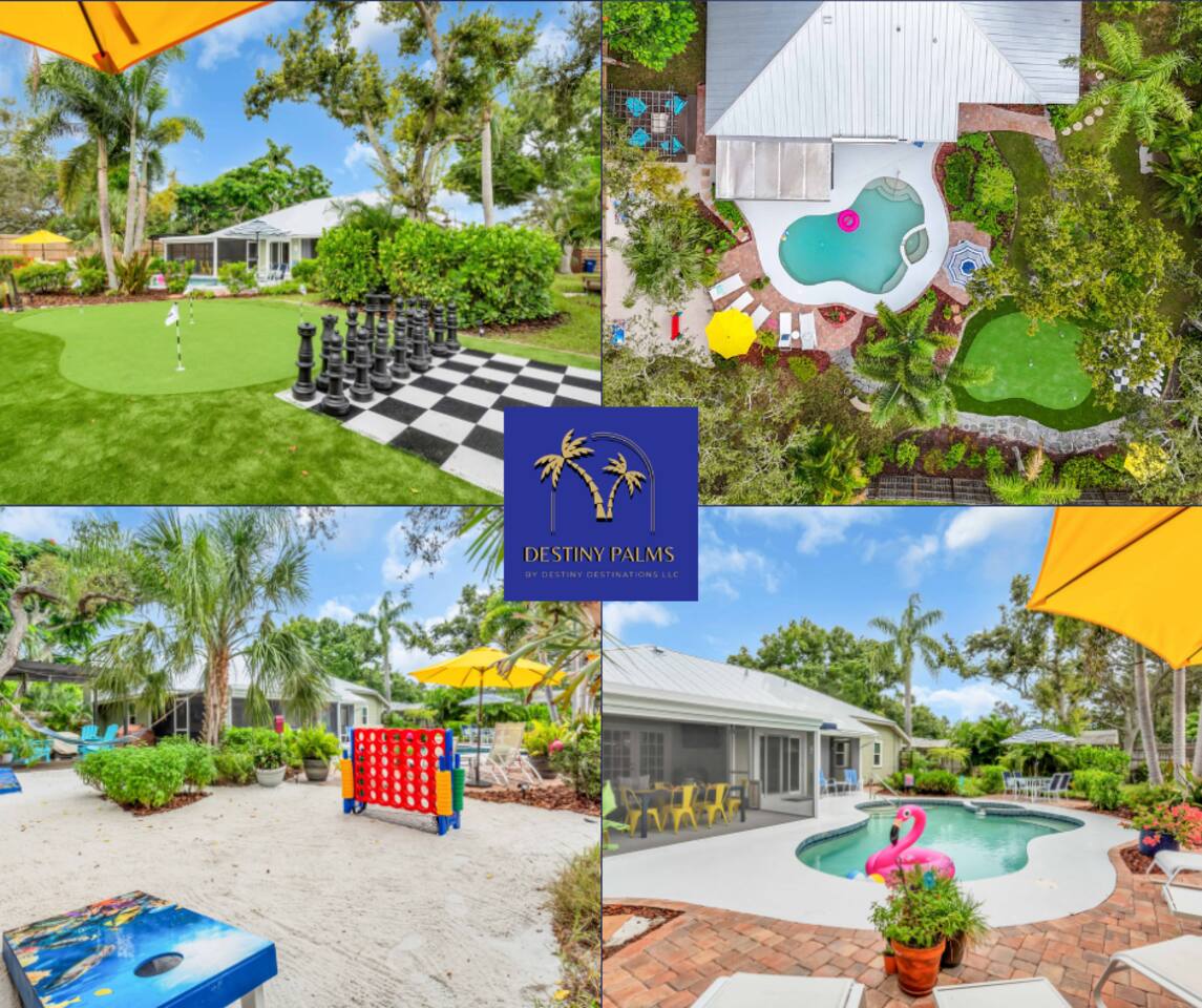Welcome to Destiny Palms — Where Vacation Meets Destiny Tropical 4BR/2BA retreat in NW Bradenton with heated saltwater pool, spa, game room, and lush gardens. Sleeps 12. Just 10 mins to Anna Maria Island and under 6 miles to IMG Academy. Near Robinson Preserve, De Soto Park, The Ringling, and Selby Gardens. Quick drive to Siesta Key, St. Armands, and Downtown Sarasota. Comfort, fun, and serenity await!